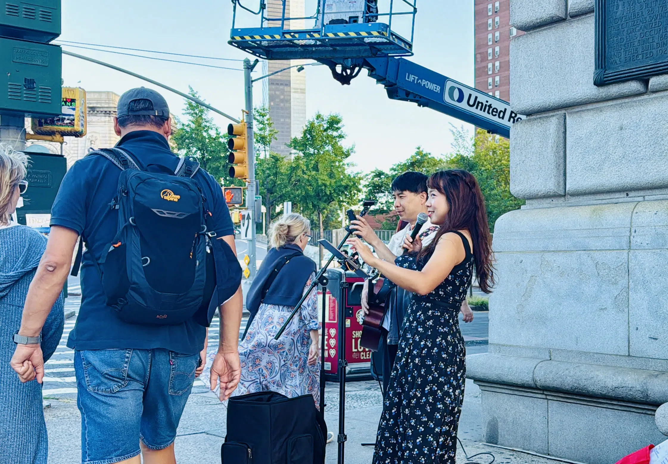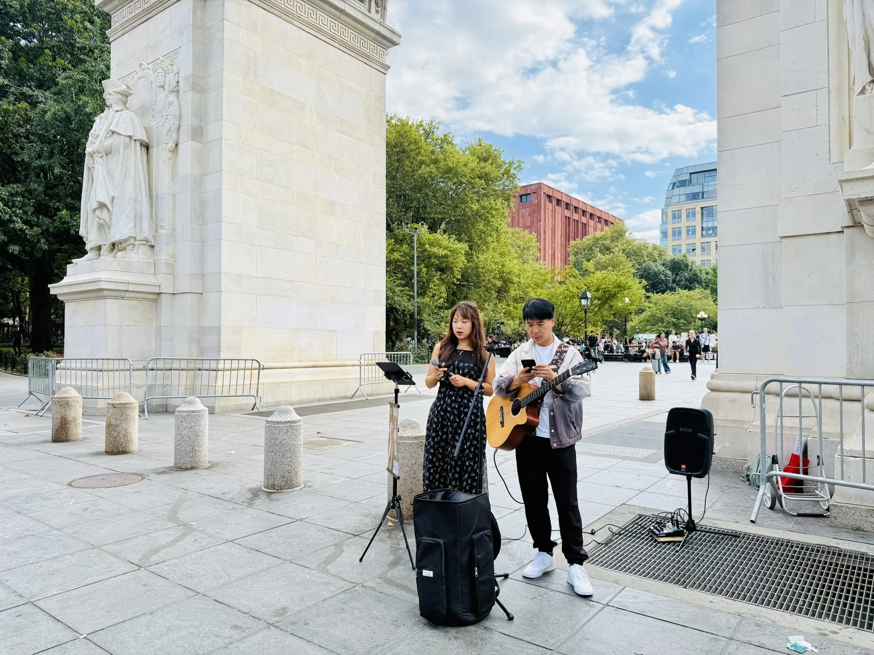 連我的即興表演課同學,都驚訝於我第一週到紐約,就報名了課程。「我喜歡你這麼有意圖,」他們說。而現在的我,已經在第二門,即興表演課的第四週了。這次是「音樂即興」,可以說更具挑戰性,但也充滿了樂趣。我交了新朋友,他們又介紹我更多的朋友,也和一些老朋友重逢。在法拉盛唐人街,偶遇一位街頭表演者後,我也完成了夢想在紐約街頭獻唱。而且幾天後,我們就一同在曼哈頓的華盛頓廣場拱門,與唐人街,玩音樂。